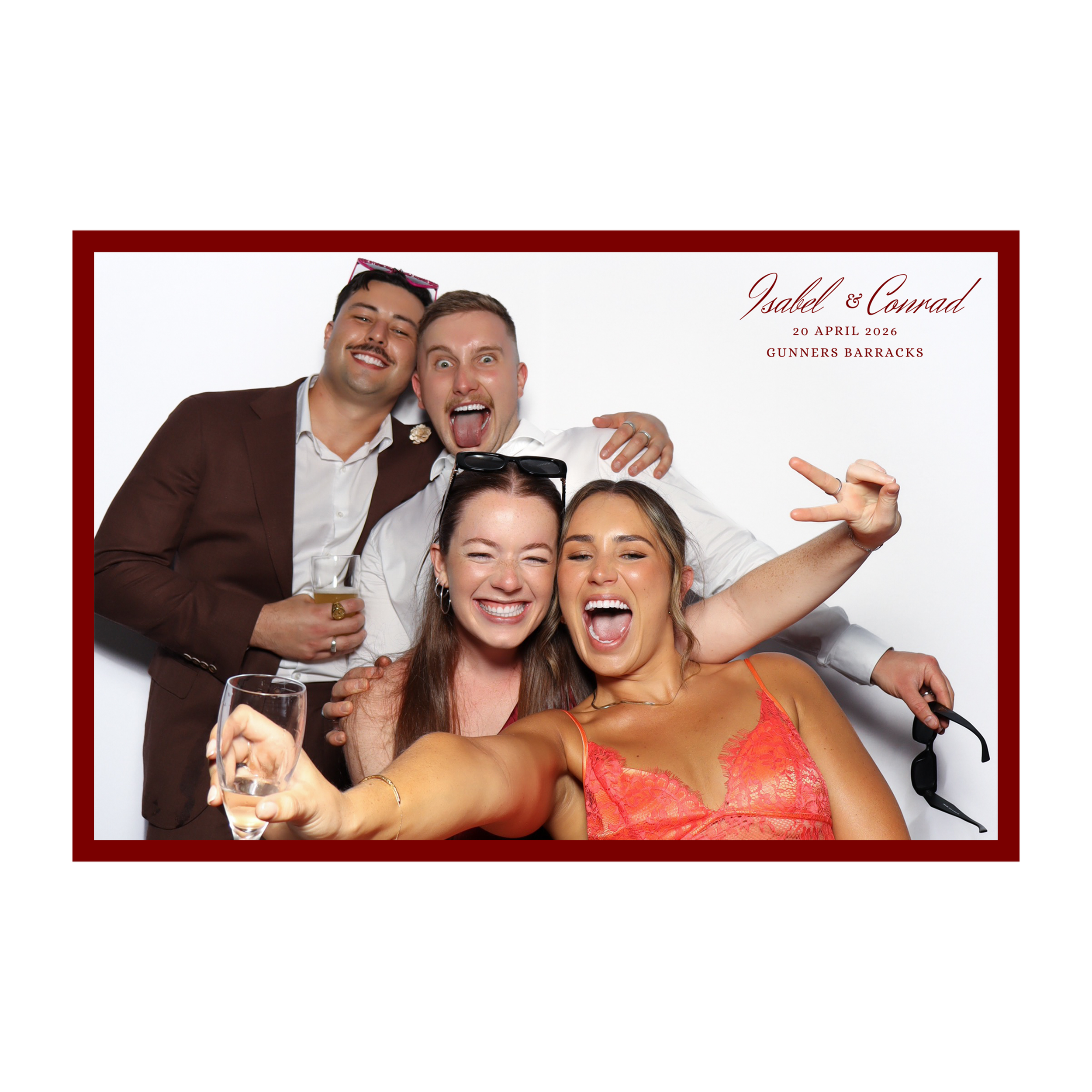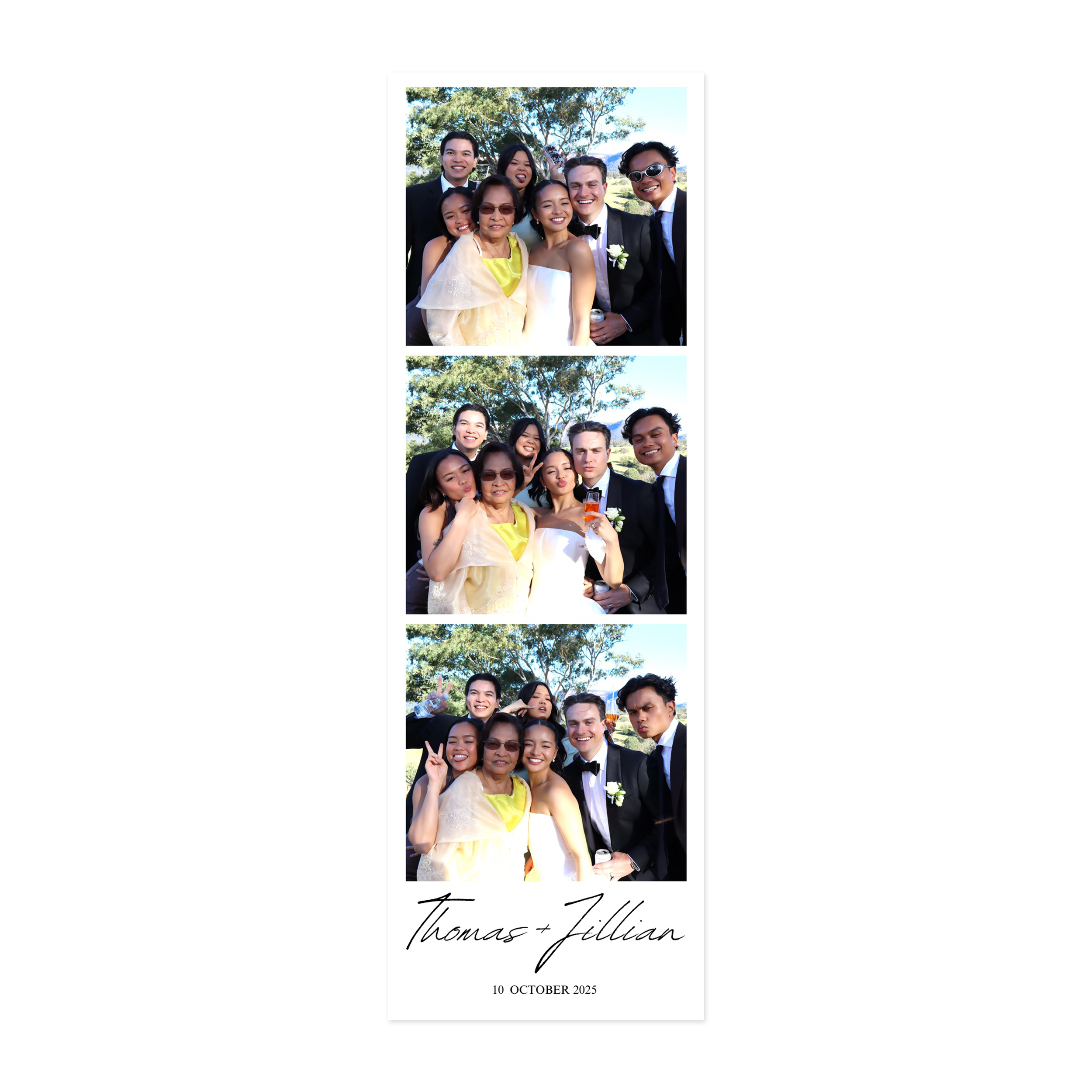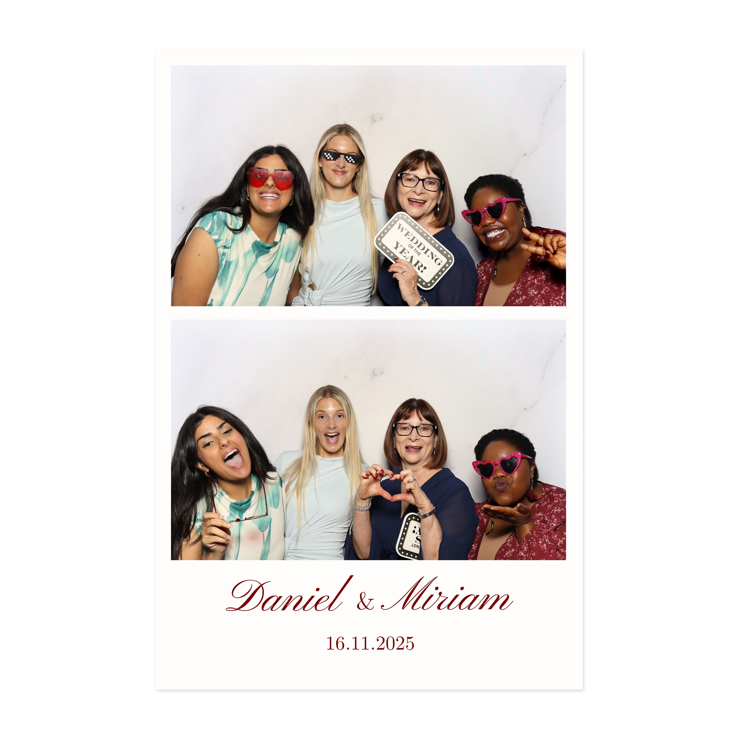 Our photo booth templates are fully custom-designed to match your event’s aesthetic, offering a stylish and creative touch that makes every print feel uniquely yours.