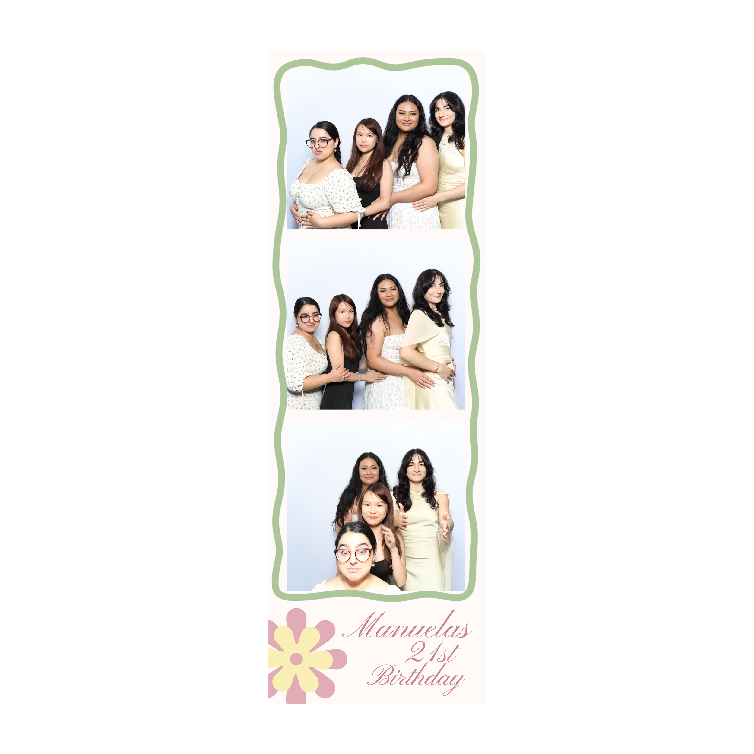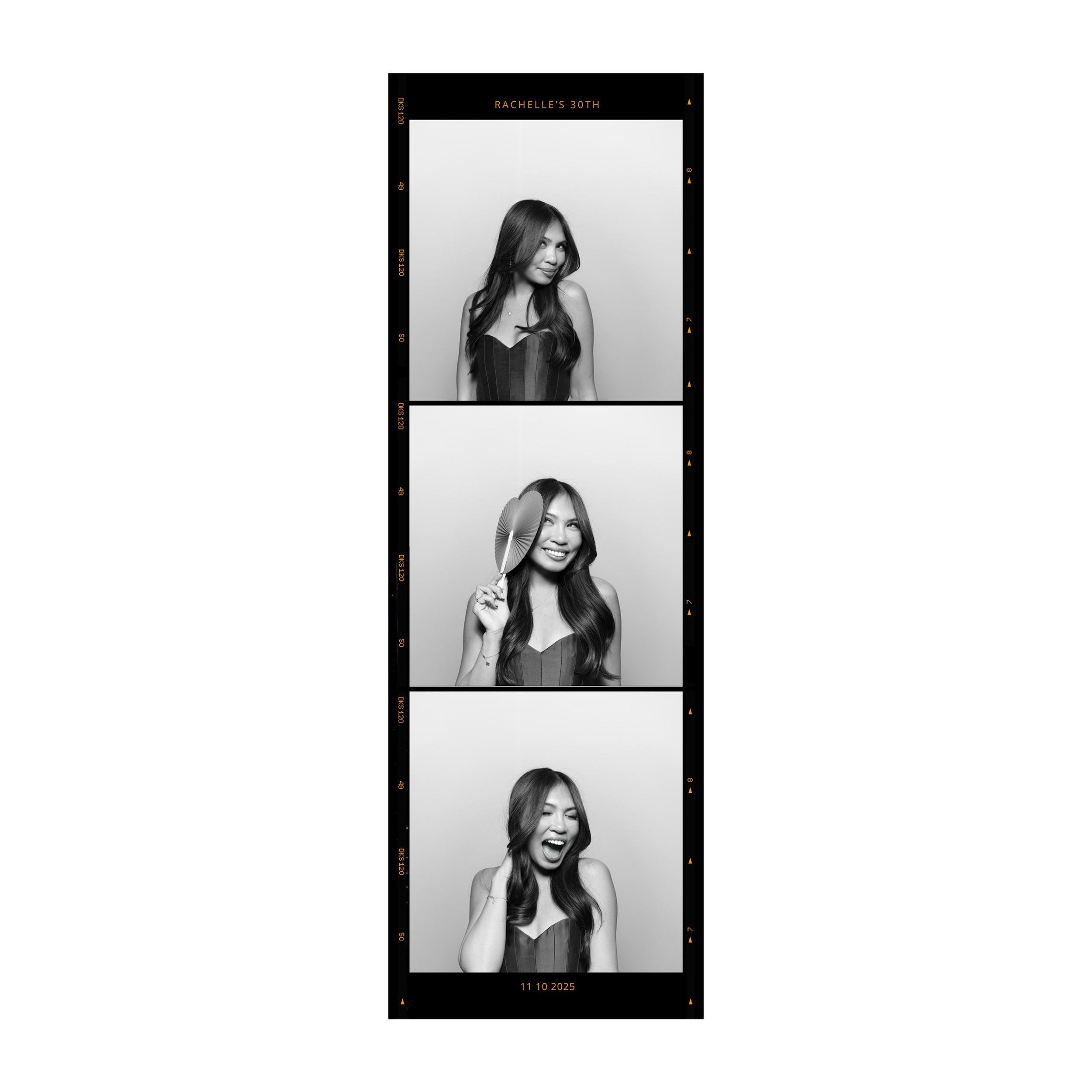 Strip layouts are 2x6 inch photo booth prints featuring a vertical sequence of images, ideal for capturing fun, candid moments. They’re a timeless favorite for weddings, parties, and branded events.