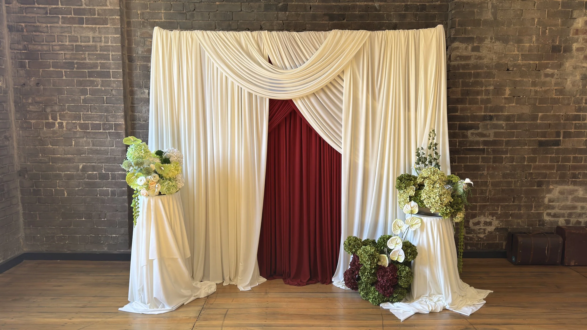 We’ve introduced new colours and layered styling to our collection, including our cherry red draping—designed to evoke a dreamy, vintage elegance while adding a refined and intentional touch to your event atmosphere.